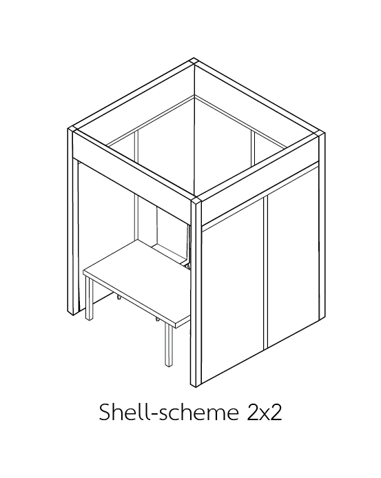 โครงสร้าง 2×2 | 9,000฿ | 4 ใบ | 1 โต๊ะ (150×75ซม.) + เก้าอี้ 2 ตัว + บูธโครงสร้างขนาด 2.0×2.0×2.4 ม. (กว้างxยาวxสูง) + ปลั๊กไฟ |