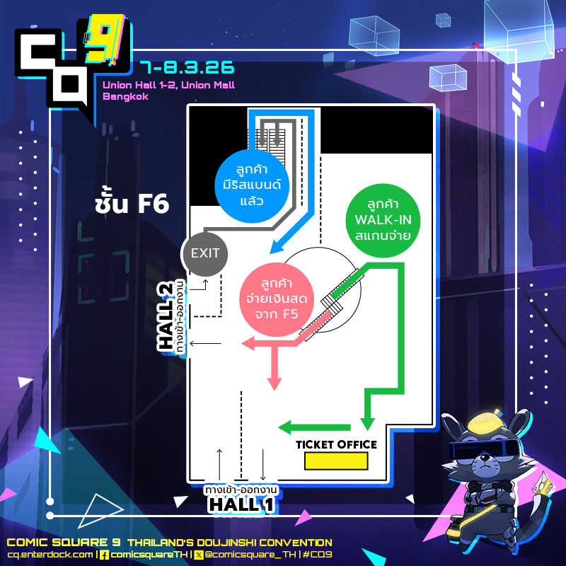 - ในวันงานอาจมีเซอร์เคิลจากต่างประเทศที่ไม่สามารถรับชำระเงินด้วยการสแกน QR Code หรือโอนจ่ายด้วยบัญชีธนาคารภายในประเทศไทย ผู้เข้าชมงานควรเตรียมเงินสดไว้หากประสงค์ซื้อสินค้าจากเซอร์เคิลต่างชาติ